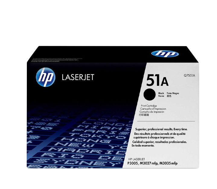 HP 51A – Toner laser de marque HP Q7551A (HP51A) de simple capacité pour imprimante HP P3005 et M3005. Couleur : noir.