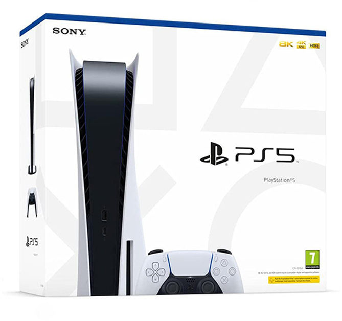 - Contenu : 1x Sony PlayStation 5, 1x Manette DualSense, 1 x socle, Connectique : 1 port HDMI 2.1, 3 ports USB, 1 port USB-C, 1 port Ethernet, Dimensions de la console (lxHxL) : 390 mm x 104 mm x 260 mm (sans socle), Poids : 4,5 kg, Couleur : Blanche